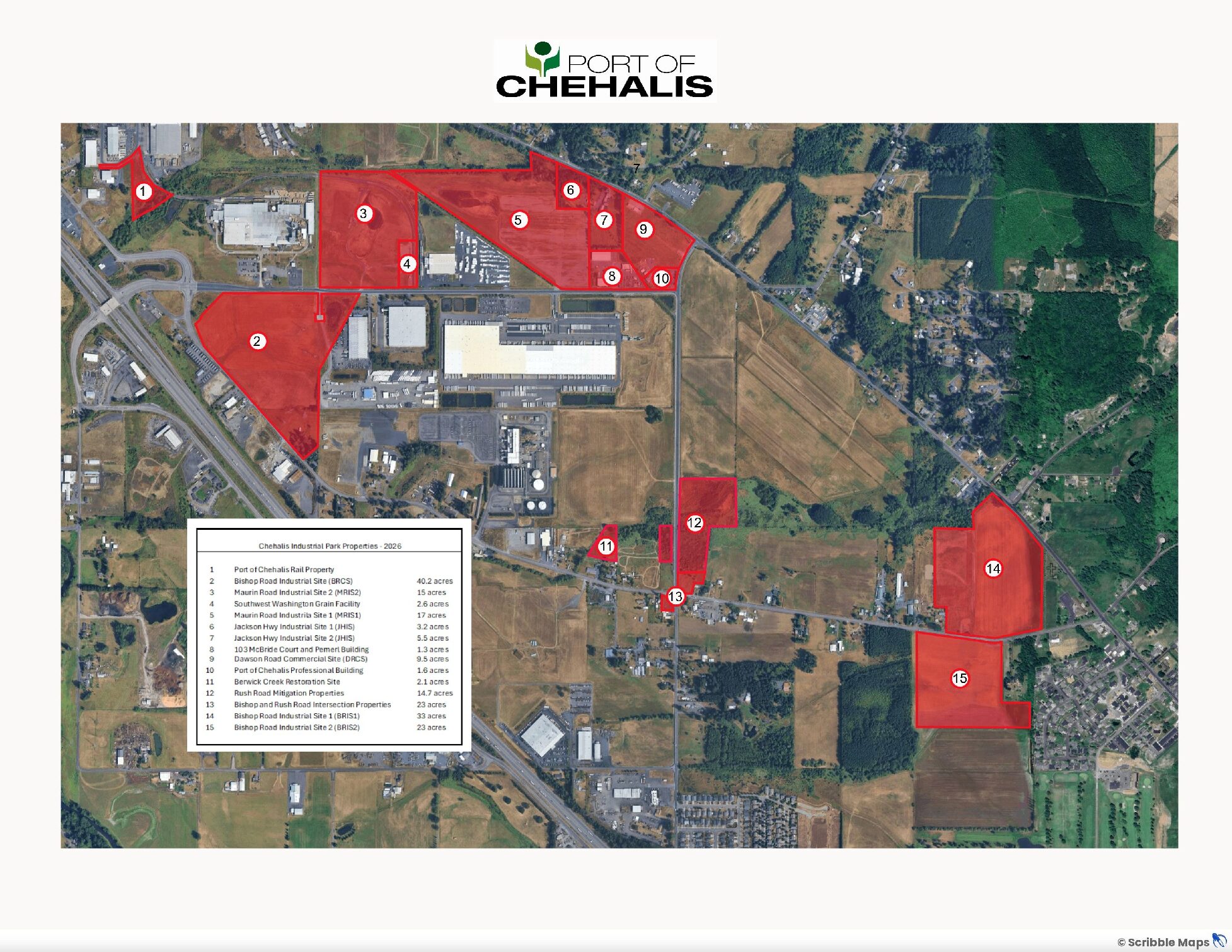 The Port of Chehalis Curtis Industrial Site is directly off State Hwy 6, and currently has rail to the property. Contact us for more information.